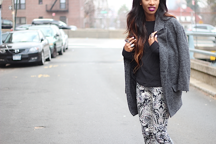 Coat: 5 Preview Thermal: Singer22 Pants: Zara Pumps: Zara (similar here) Rings: Nasty Gal (similar) Lipstick: Iman Cosmetics “Taboo” Photos by: J. Coerbell